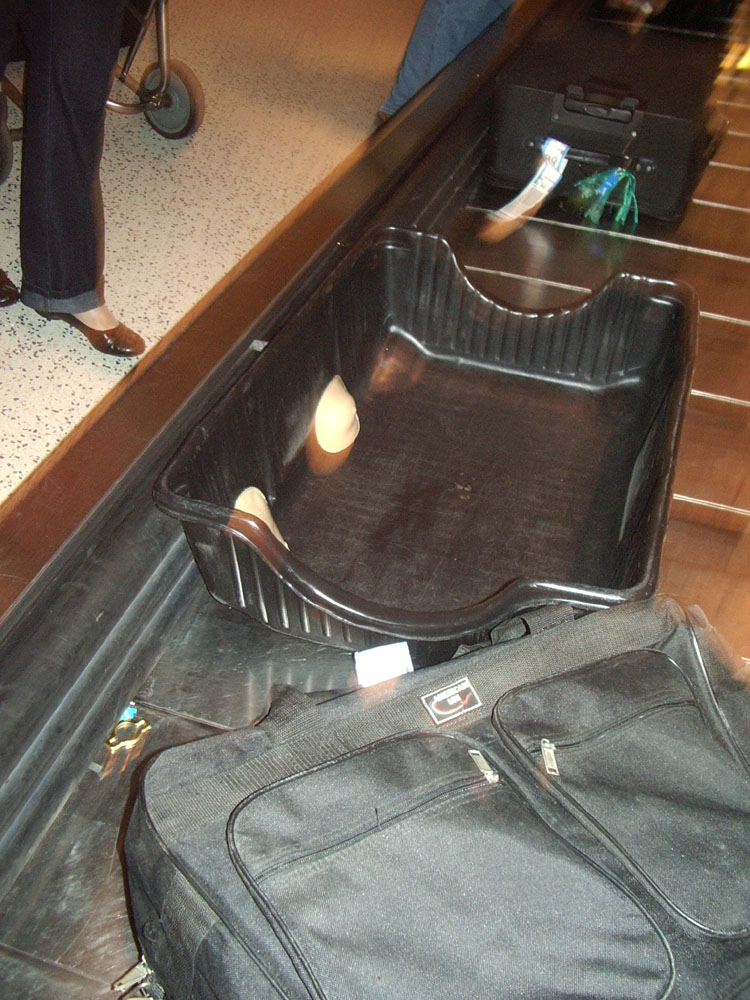 One thing that's worth noting is while waiting for my bags in Houston, a woman's breasts caught my eye (no surprise there). They were making the rounds on the belt after apparently falling out of someone's bag. I grabbed my camera and shot the pic below then others realized what they were too. Those little silicone accessories got quite a laugh as they kept circling on the conveyor!