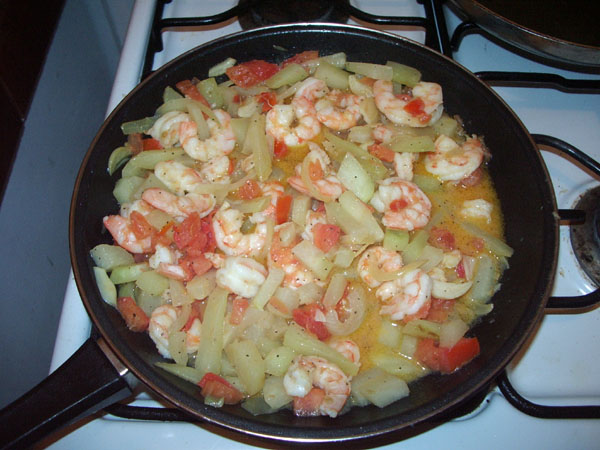 Below is a pic of a shrimp & veg mix I put over spaghetti and it was pretty tasty! The green that looks like broccoli is actually a vegetable called pataste (sp?) and tastes like broccoli. I had some leftovers so actually used the shrimp this morning mixed with scrambled eggs and that was really good as well.