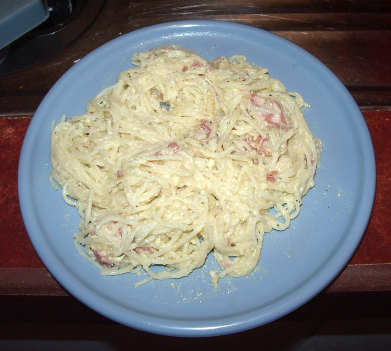 On a food note, I made spaghetti carbonara (I think that's what its called) the other night and thought I would show how it's done when you don't have a pot handy. Check out the pics below!