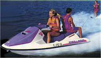 A note about the ever increasing HP figures... Although Sea Doo and other PWC manufacturers have always had a constant battle to put out a ski that one-ups the competition, you'll notice that any new ski (no matter who makes it) will ever go past 70 mph. The reason for that is the PWC manufacturers have an agreement with the USCG (and maybe insurance companies too) to keep the speeds in check. The way Sea Doo does it is to limit the hull design. They put out huge hp but then the add weight and design the hull so it's really hard to get over 80mph safely. Yamaha has a great lightweight hull but limit speeds with the drive train design. What's really interesting about that is now people are putting the RXP engine in the Yamaha hull and have built the first PWCs that will break the 100mph barrier. You couldn't pay me to ride on a PWC going that fast though!
