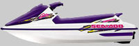 The GTS is basically the same ski as the 1994, but the GTX gets the 657X engine as well as sleeker looking mirrors. An optional Touring Seat (hard to come by these days) offered on the GTX (it's shown on the GTX picture below) made the GTS and GTX really ride well, although it was molded to seat two instead of the flat seat that could accommodate three. That seat will fit all the 1990-2001 GT style hulls and could be found in purple/green, purple, and yellow.